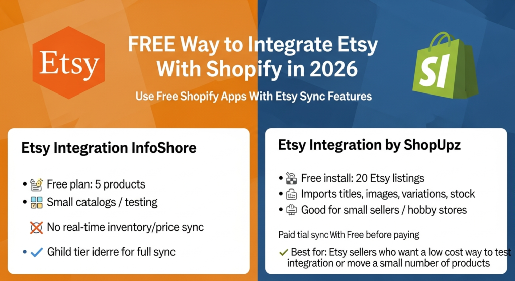 If you are selling on both Etsy and Shopify you have probably wondered: “Is there a free way to integrate Etsy with Shopify?” The short answer is yes but with limitations. There are several free or freemium tools and methods that let you connect your Etsy shop with your Shopify store but most offer basic features unless you upgrade to paid plans. In this guide well walk you through the best free ways to sync Etsy with Shopify how they work and pros & cons so you can decide what is right for your business.